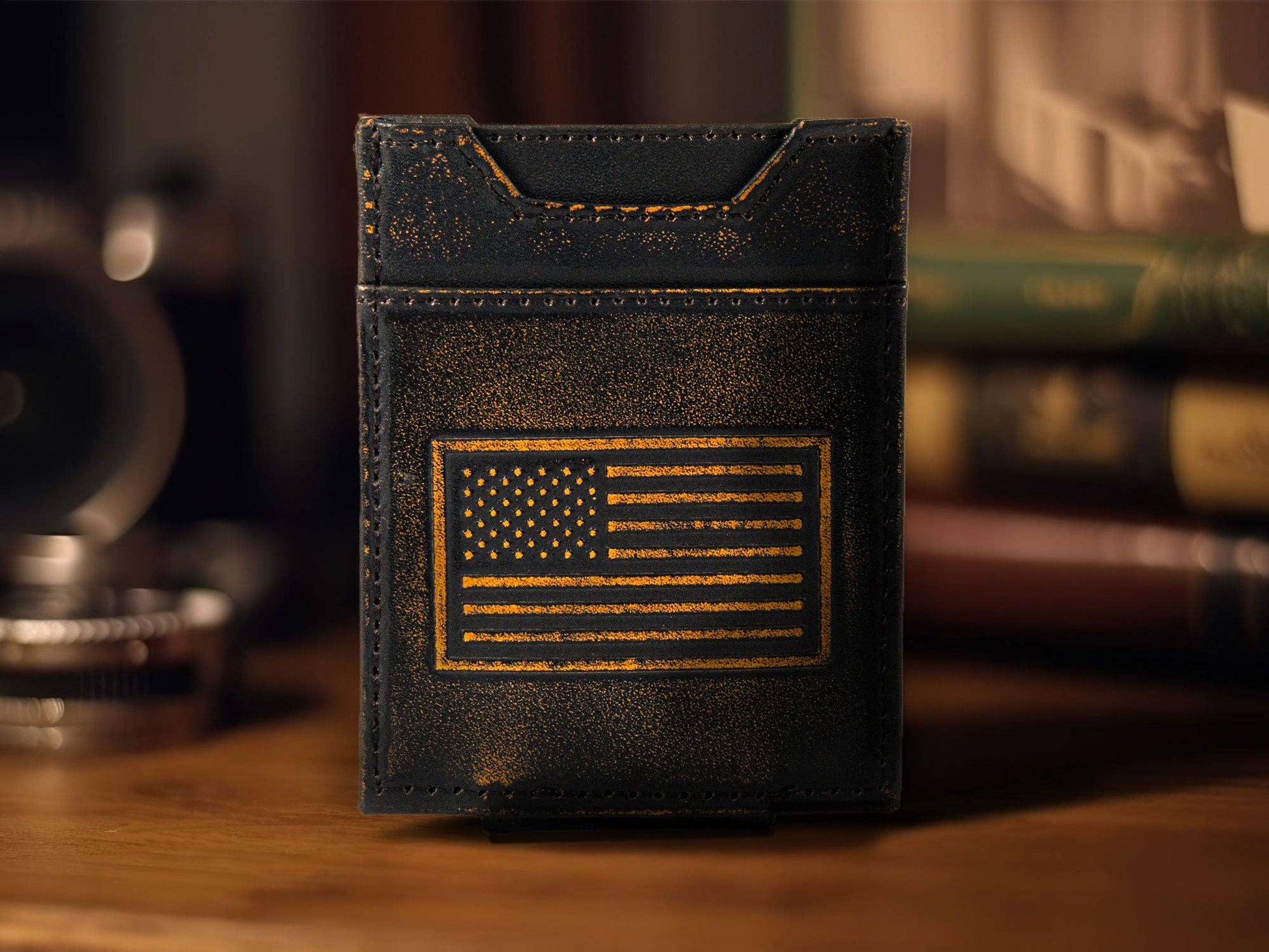 American Flag Burnished Leather Magnetic Front Pocket Wallet