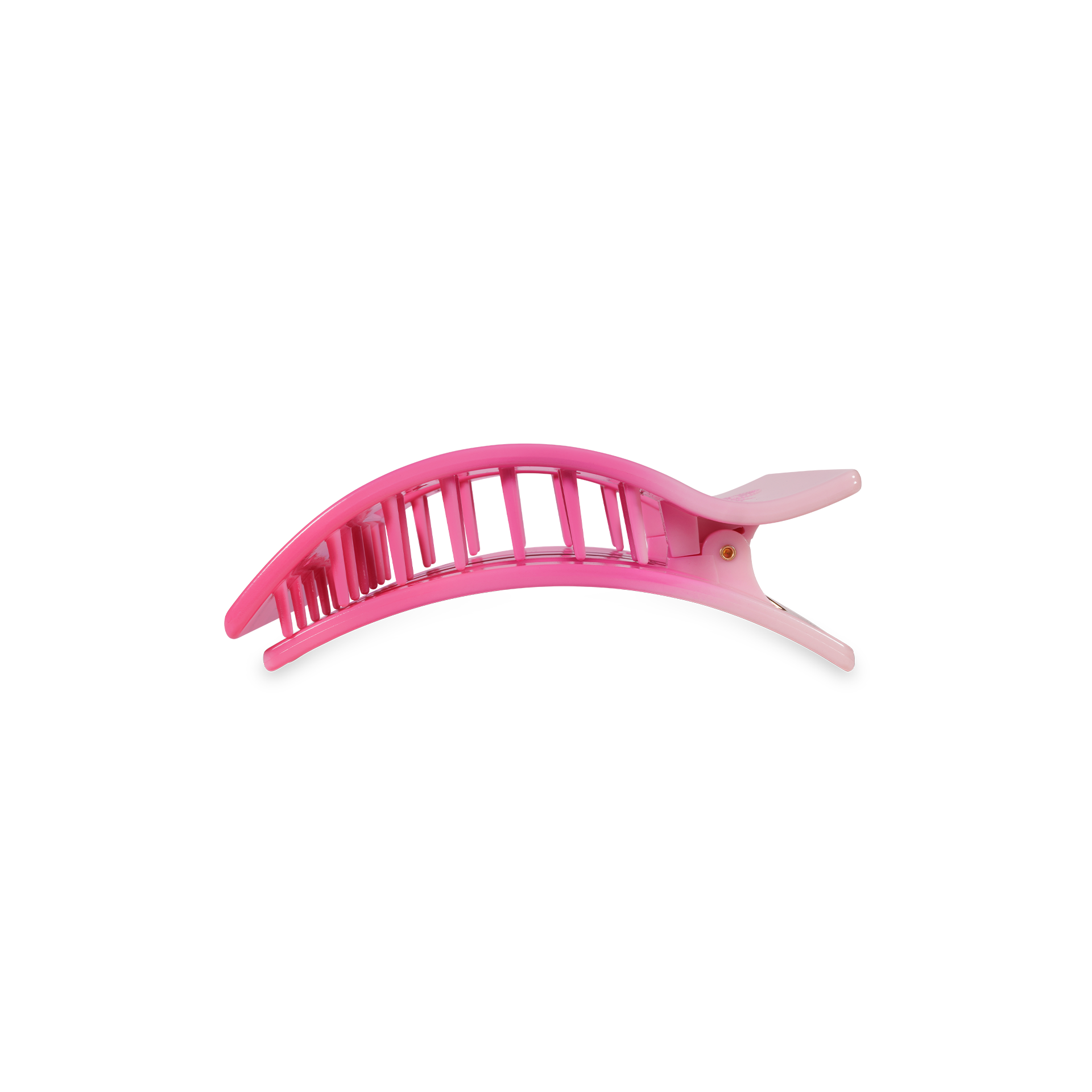 Lean back and relax - comfort just got a new shape. Introducing the TELETIES Kiss & Tell Small Flat Rectangle Hair Clip in Pink, the newest addition to our best-selling Flat Clip Collection. Joining the original Round and Square styles, this elevated rectangular design offers the same flat-back comfort and stronghold TELETIES is known for - now with a sleek, modern style.