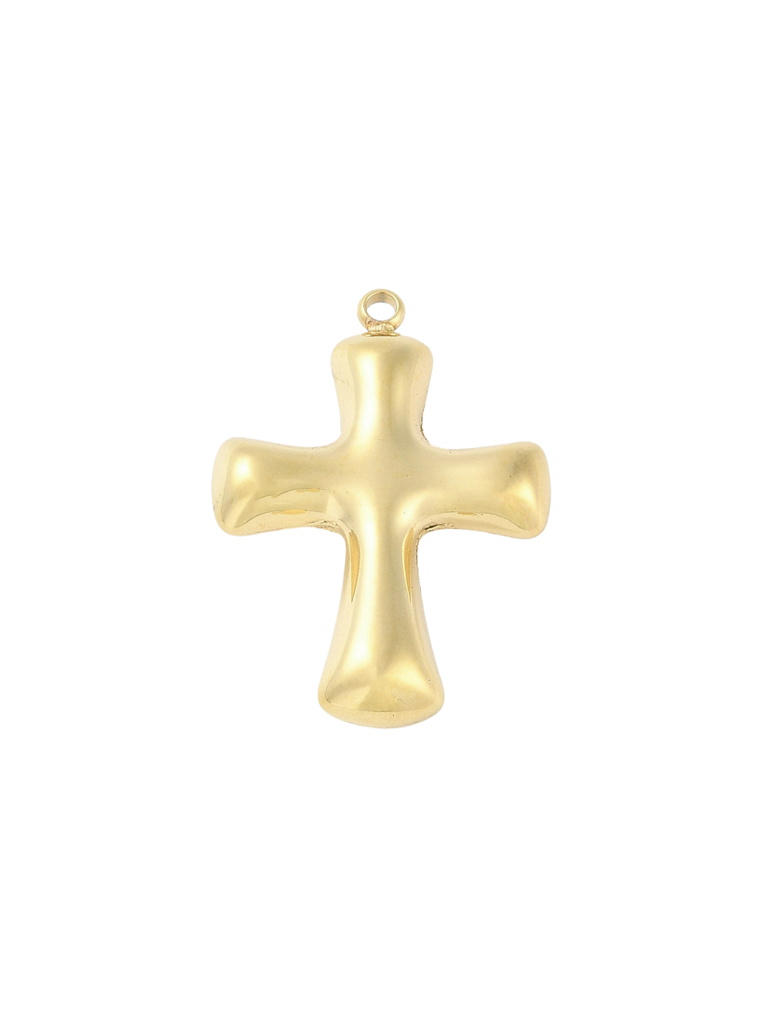 Make a bold statement of faith with this stunning Gold Bubble Cross Charm. Its unique, smooth bubble design adds a modern twist to the classic cross symbol. Perfect for charm necklaces, bracelets, or keychains, this gold-plated charm is versatile for everyday wear or special occasions. Ideal for DIY jewelry projects, religious gifts, or adding a meaningful touch to your collection.