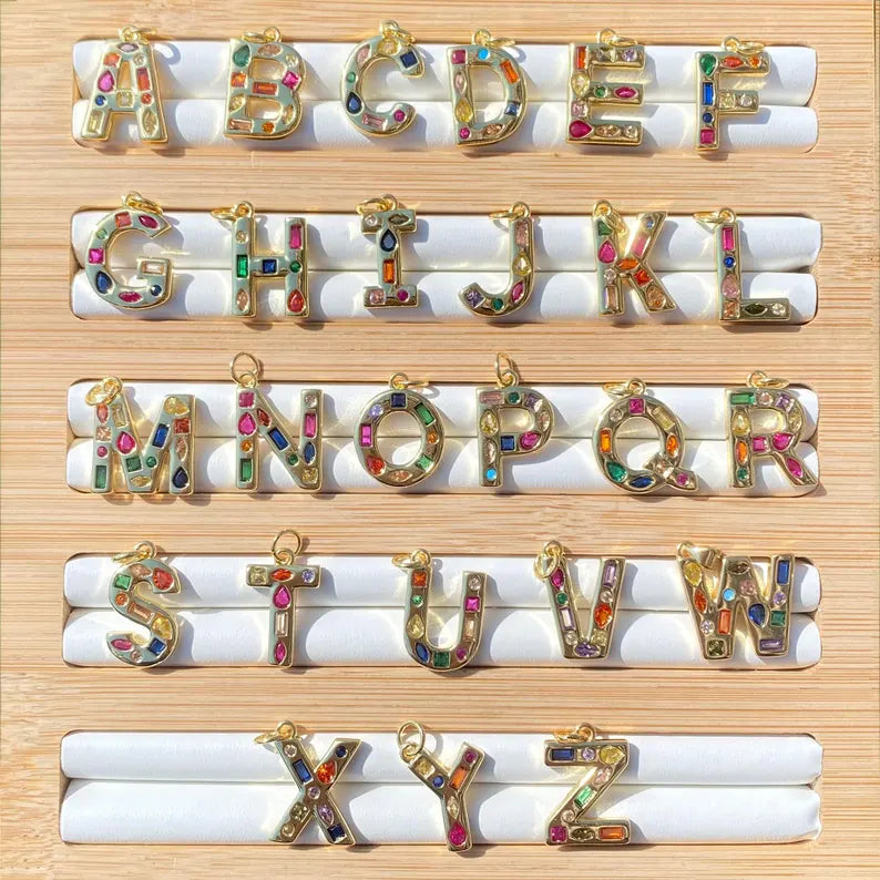 Initial Pendant with Multicolor Stones
