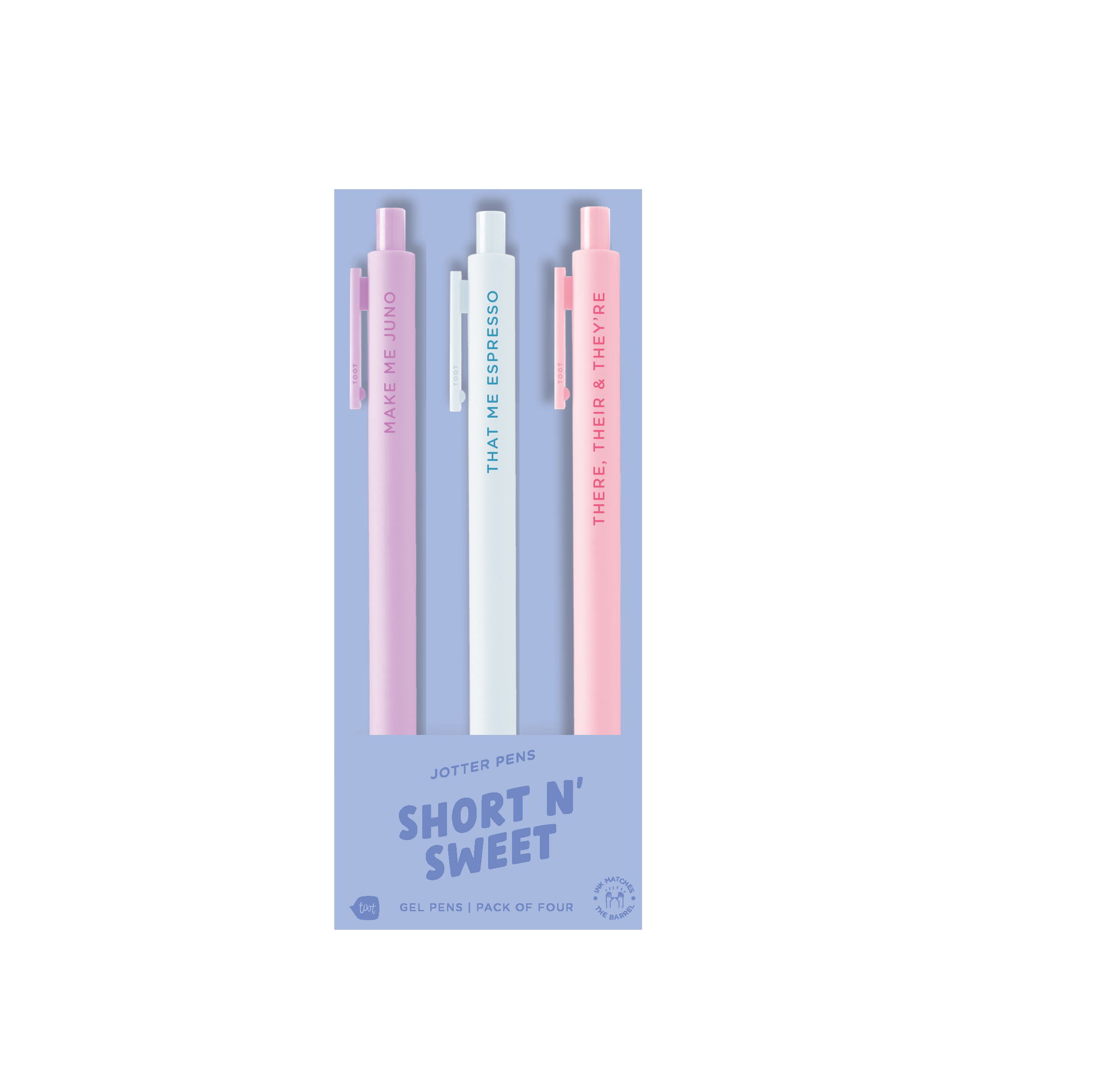 We have Jotter Pens and we did them WRITE with bright colors and a lot of attitude. The soft-touch barrel surface and fine-point gel tip will make this pen your new favorite. It's definitely doodle bug approved. And guess what? The gel ink matches the pen color! (Navy, Gold, White, Grey, and Metallic pens have black ink..) So whether you're signing official documents or doodling your life away, your thoughts will shine bright.