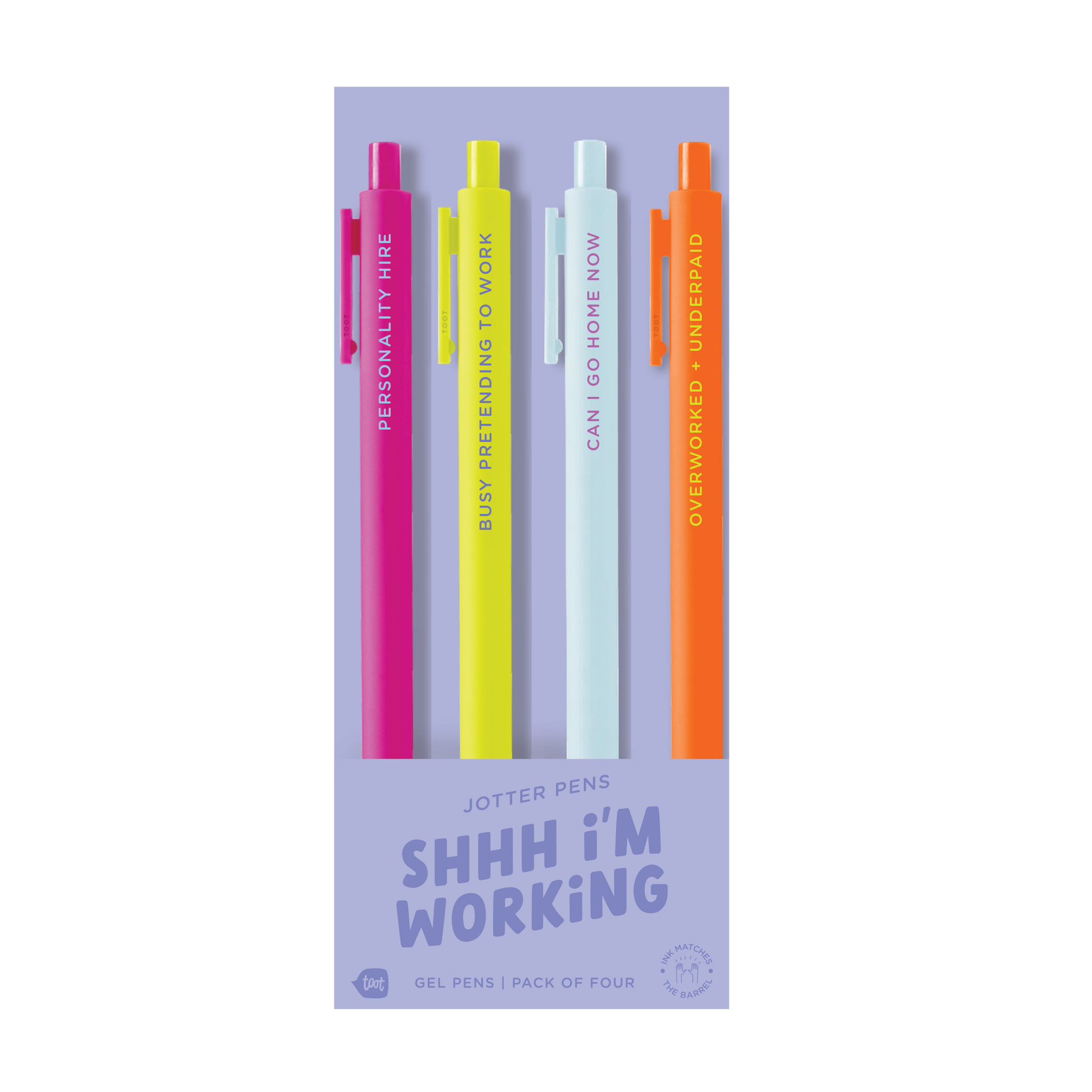 Our 4 packs of Jotter Pen Sets are all themed sets. Super fun sayings and the perfect color mixes. The soft-touch barrel surface and fine-point gel ink that matches the barrel will make these pens your new favorite. Did we mention these pens are TIKTOK famous?! Yep, that's WRITE! (please note the navy, grey, white, and metallic pens write in black ink)