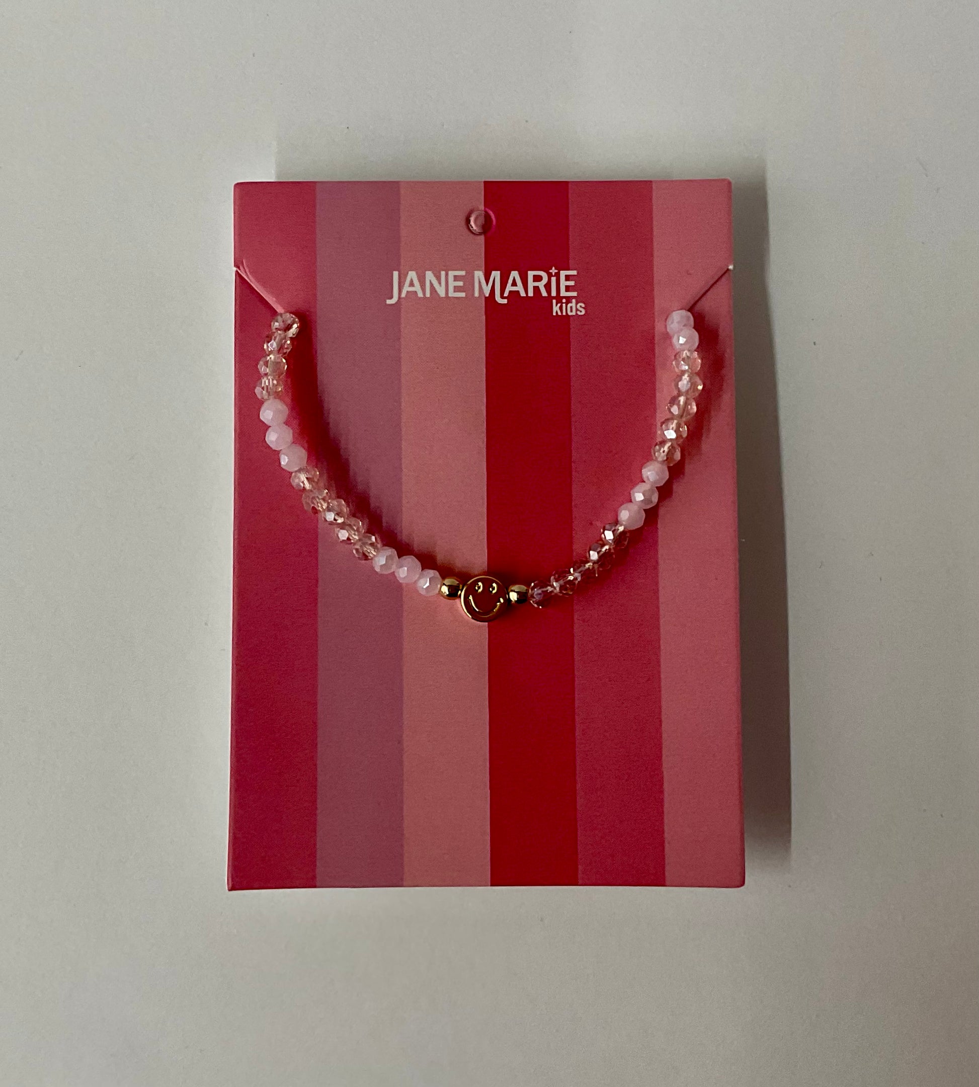 Kids 14" Pink Faceted Beaded Necklace with Gold Happy Face