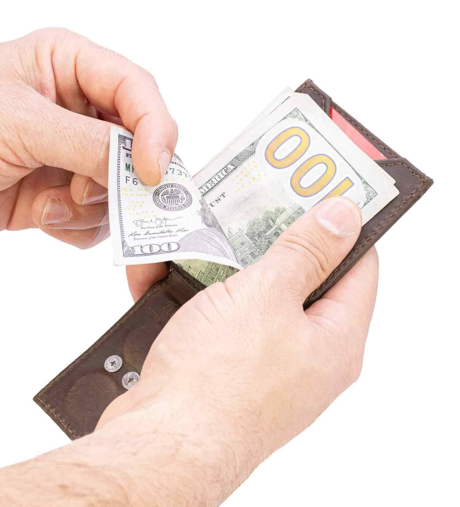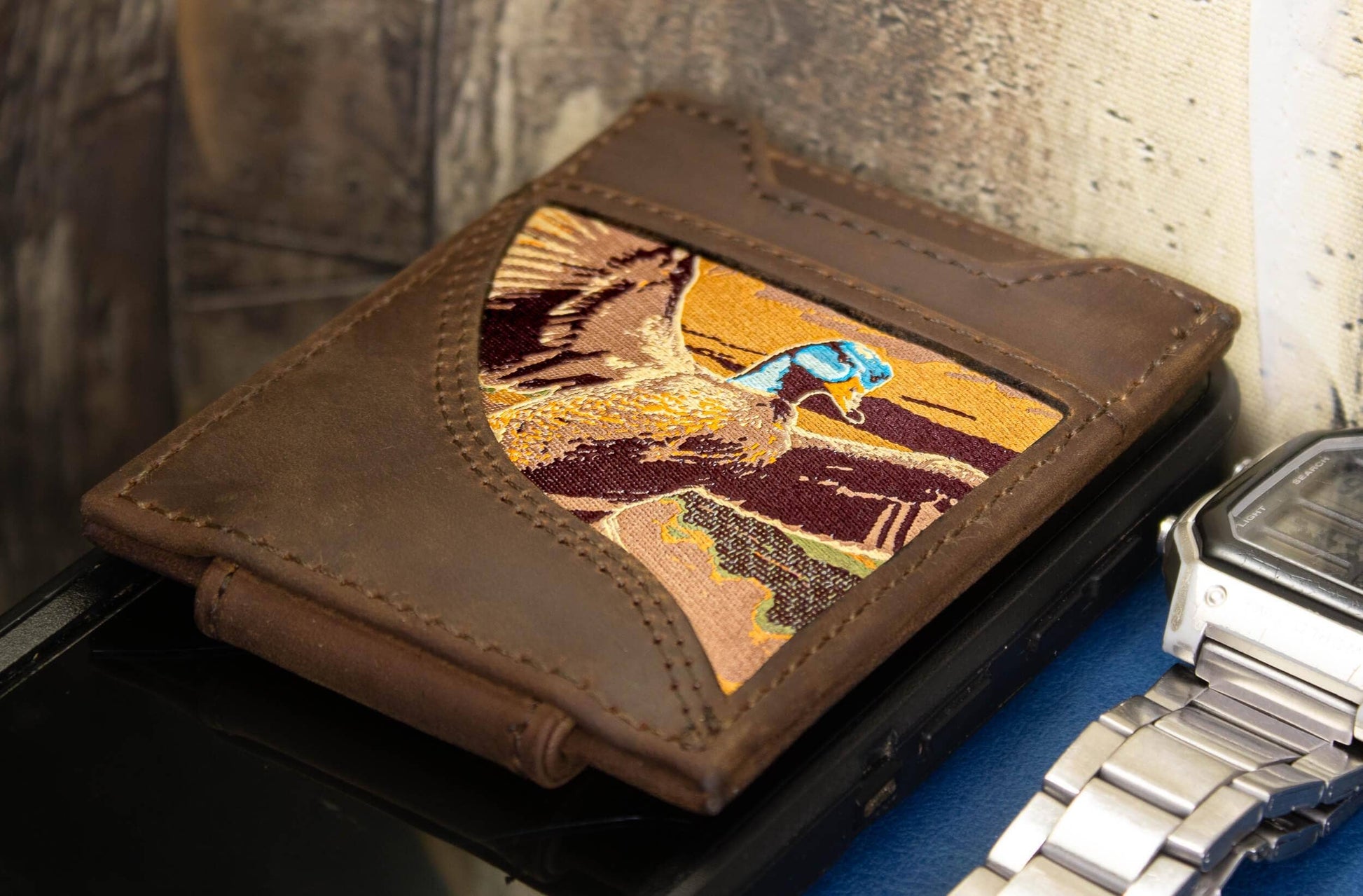 Mallard Men's Magnetic Front Pocket Woven Patch Leather Wallet.