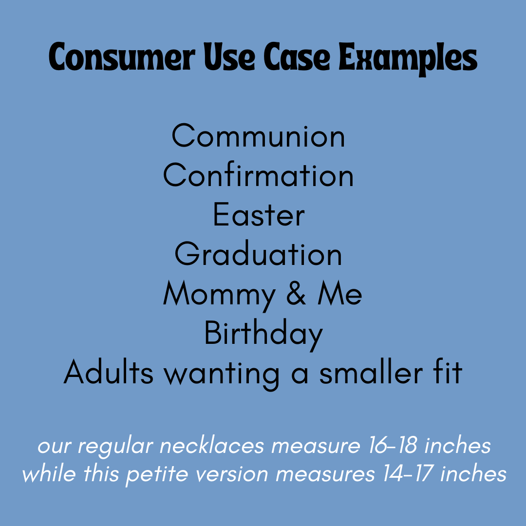 * 14" chain with 3" extender (vs. 16" for our regular size)