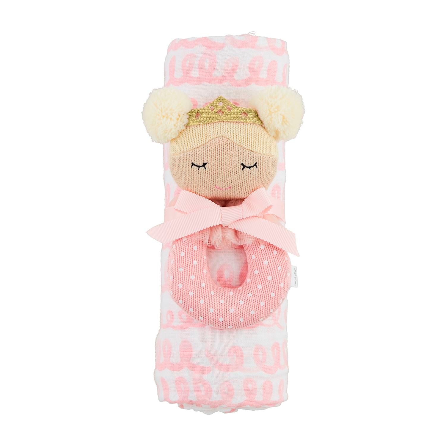Pink Swirl Swaddle & Rattle Set