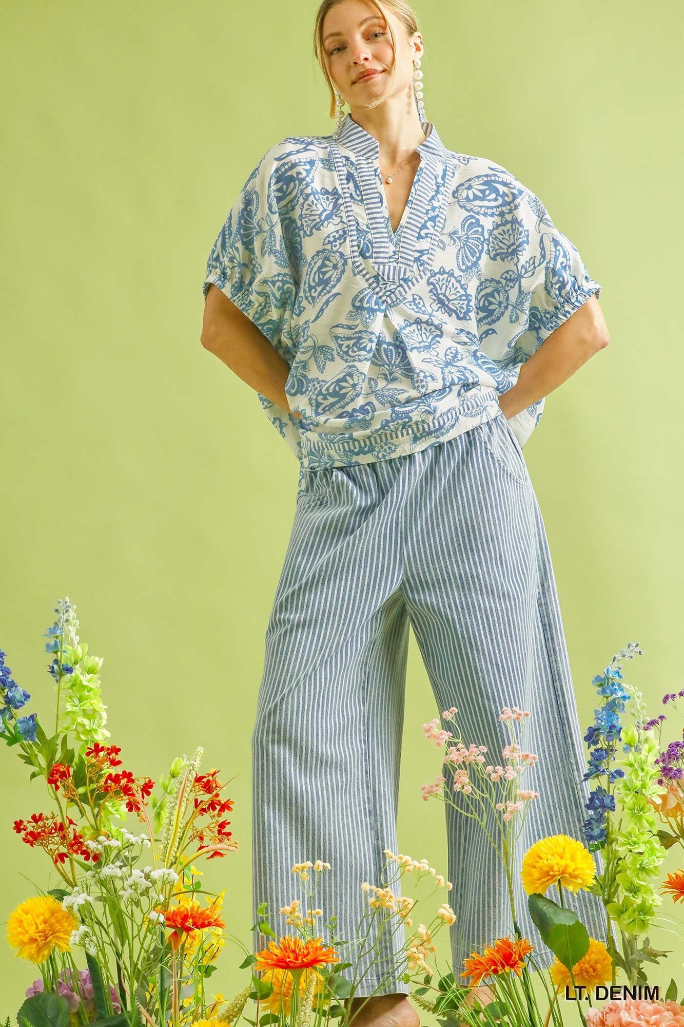 Stone Wash Stripe Wide-Leg Pants