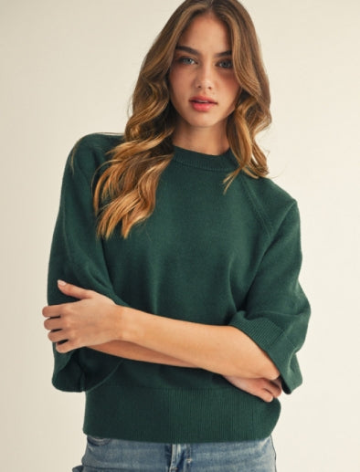 Sweater Top with Wide Sleeves & Drop Shoulder in Hunter Green