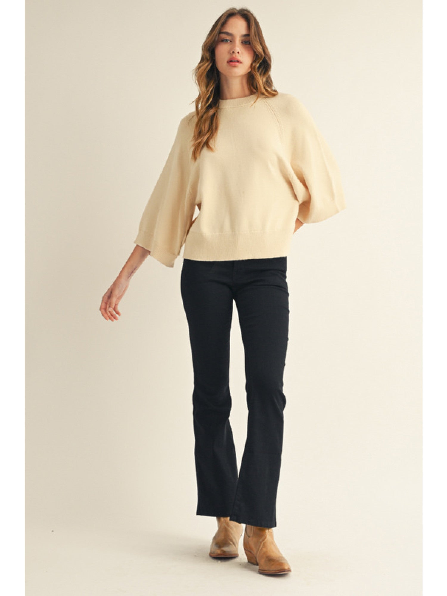 Sweater Top with Wide Sleeves & Drop Shoulder in Oatmeal