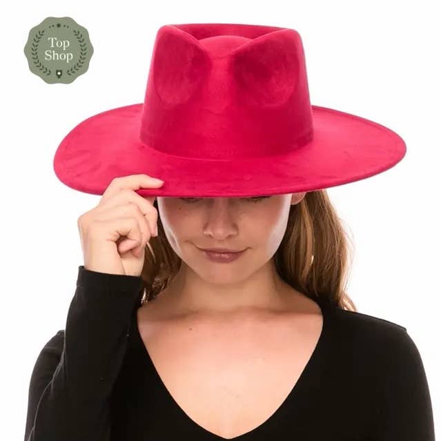 Wide brim rancher hat in vegan suede. Unisex style for women or men.